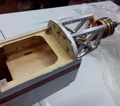 Чтобы попасть в центровку силовые акки расположил максимально возможно вперед.Для удобства(чтобы не через крыло засовывать) сделал в передней части фюзеляжа съемную панель и внутри площадку под АКБ.