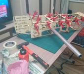 Все петли, кабанчики, рычаги усиливаю стеклотканью и смолой. Эти детали соответственно потом монтирую тоже на смолу. Хвостовую часть собирал прикрутив к передней и выставив на столе по линии меткам чтобы не было сюрпризов с перекосами потом.