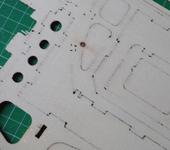 Мелкий дефект. Сергей, я так понял, ты менял чертеж стапеля, на новых выкройках пазы у переборки для корневой нервюры длиннее где-то на 07-08мм, чем остальные. Если не заметить и приклеить, то стапель кривой получится, паз упирается в стол под стапелем и не прилегает к дну.