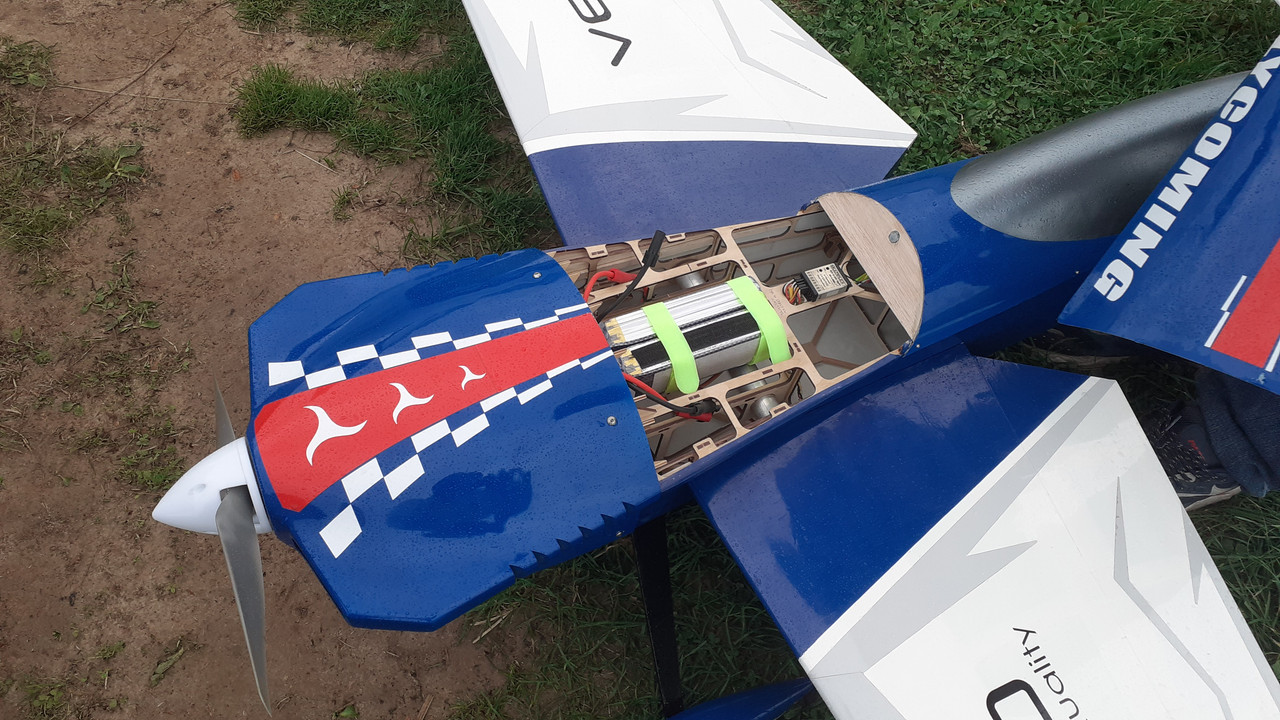 В ближайшее время постараемся снять полноценный 3D полет данной модели, а пока мои впечатления. Знаете, первое ощущение от модели очень важно, так вот данный самолет сразу дал ощущение комфортного полета, несколько щелчков триммера по рулю высоты и все! Полет на ноже комфорт, на спине ровно без поддержки. Летая на нем не оставляет ощущение легкости пилотирования, я конечно не 3D пилот, я больше по копиям. Как копиист я сталкивался с разными моделями и для себя понял, что как только ты научился сажать модель, считай ты с ней подружился. Так вот этот самолет не напрягает не взлетом не посадкой. Я рассчитывал получить модель выходного дня для тренировок копийной программы и покуражиться в промежутках. И я ее получил!! Теперь о характеристиках. Вес с АКБ 6S 6000 составил 4900, и даже с этим весом модель отлично уходит с висения, а о преимуществах разборного фюзеляжа в поездках даже и говорить не стоит и так все понятно.
