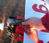 Ну вот долетался,при посадке нерасчитал растояние до линии електропередачи и бамбанул.Потерял хвост и винт.До етого зделал замеры массы тяги и оборотов.Следующый полёт из за отсутствия зап.винта откладываетса на неделю.