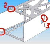 “верхушка” (на приаттаченом рисунке она снизу, так наглядней) судя по задумке должна впихиватсья между боковинами (позиция 1), а “низушка” должна клеится на торцы (позиция 2). Только если так сделать, то шпангоут не входит в вырезы под него (что и видно на позиции 3) и потом когда начинаешь добавлять остальные детали, то они тоже ненормально состыковываются. Шпангоут войдет правильно, если “верхушку” и “низушку” поменять местами, только тогда остальные детали глобально несостыкуются, либо надо менять размеры какой-то из деталей и возможно не одной. Я подрезал лишнее в шпангоуте, но потом при расстановке других деталей все равно получилась бяка. Можно сделать “низушку” поуже, а верхушку пошире, но тогда скорей всего возникнет проблема с фонарем…