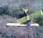 У меня Футаба 7 на 72 Мгц. Буквально через пару минут после взлета самолет стал резко отрабатывать элеронами и машинкой газа в крайние положения. Это происходило короткими, на пол секунды рывками, с интервалами примерно в 15-20 секунд управляемого полета. На бензомотор не грешу, т.к. за час до этого словил фатальную помеху тренер с калилкой на 40 Мгц. При заходе на экстренную посадку случилась очередная коротенькая эпилепсия, мотор остановился, наверно киллсвитч его вырубил, и пришлось плюхать модель в траву. Как назло там оказалась старая грузовая колея. Самолет кувыркнулся через нос, крылья отсоединились от самолета и остались практически целы. Даже стойку шасси толком не погнуло, но фюзеляж лопнул пополам. Черт, у нас золотая осень, стоят тихие, теплые деньки а мне летать не на чем. 😦 Восстанавливать его не хочу. Уже не будет доверия конструкции, да там и так зад тяжелый. Сейчас осматриваюсь в поисках чертежей пилотажного моноплана под 50 сс бензин.