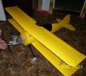 Обнаружилась сильная тенденция к задиранию носа.В первом полете это видно,сильно проседает хвост,даже не хватило триммеров.Пришлось садить и перенастраивать триммер высоты…Предстоит разобраться с этой тенденцией, возможно это следствие задневатой центровки, а может просто лобовое сопротивление верхнего крыла дает момент на кабрирование.В итоге для горизонтального полета руль высоты смотрит вниз на 5-7 градусов.Проблемы особой в этом я не вижу, надо просто принять это как особенность бипланской аэродинамики.