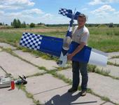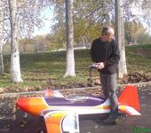 Самолёт полностью самодельный, фюзеляж - силовая часть липовая фанера, силовые шпангоуты- берёзовая фанера, хвостовая часть -бальза 3мм, обтянут тонким стекловолокном
