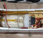 -питание приемника и серв А123_2300мАч закреплено хомутом изнутри к полу фюзеляжа в районе за гайками крепления крыла (хомут видно на фото);