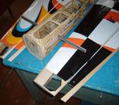 РВ, и РН делается тупо из бальсы 8мм (средней плотности). Неподвижные части РВ и РН модернизируются, лишнее отрезается. Пленка предворительно отклеивается утюгом на необходимое расстояние, после переделки обтягивается обратно. Линия врашения РН делается под прямым углом относительно стабилизатора.