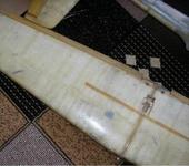 Крыло съемное V-образное,низкоплан, крепление - спереди дюралевый штырь, сзади два болта. Площадь 45 кв.дм