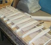 Окончательный вариант формы фонаря. Крыло на стапеле, видно как с двух сторон клеется