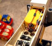 Вырезал куб чуть шире фюзеляжа и по высоте от крыла до кока, и по длине так, чтобы можно было двигать вперёд-назад. Прорезал щель внизу (возде кока), засунул туда аккумулятор и ближе к крылу прорезал меньше щель и засунул туда приёмник. Щели прорезал в поролоне так, чтобы аккум еле запихивался и для приёника также. И всё это добро засунул в указанное место в распорку (поролона), подвигал вперёд-назад - нашёл центровку. И вот уже раз 15 летал - оно никуда не ездиет. Под баудены тоже сделал прорези, а то они излишне поджимаются к корпусу. Если нужно - могу сфотать как всё это выглядет.