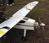 Делай 13 см и будет ок! Только я догружал нос свинцом 500гр, движок стоит такой www.hobbyforyou.ru/catalog/502-36837.html! летает отлично! флапероны опускаю и взлетает сразу! пару раз задевал выключатель кил свич, планирует отлично! вес около 10 кг! поставил 5 дюймовые колеса ду бро ,взлетает и садится на любой поверхности! А почему тяжелый ,я его весь из нутри эпоксидкой залил ,все швы и стыки! сервы все металл 10кг ,кроме дроселя ! очень простой на взлете и пасадке , Тренер, только большой!
