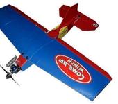 6.5 кубов на 1140 мм размаха- интересно какая у него нагрузка на крыло. У моего картоныча размах 1200, длина 1000, вес 1100 гр., мотор 0.15 - так он крутил петли и бочки (пока жив был).