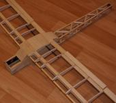 На счет материала - подход “из бальзы” он стандартен. Когда строишь из ели и сосны, да фанеры - там другой, по другому конструкция складывается. В том плане что когда строишь из бальзы - ты вынужден однообразные элементы, например нервюры повторять много раз. С точки зрения моего подхода - это нецелесообразно: на твоем размахе я использовал всего 8 нервюр из фанеры - на 1.1 м. Всего, причем две из них задают центроплан. Лонжерона вообще нет. Его роль играет передняя кромка, сделанная потолще, она же и задает крылу профиль…