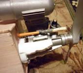 Да, по газовой машинке. Проще было пропустить через первый и второй шпангоут пластиковую трубочку, а машинку поставить в отсеке для аппаратуры. В трубочку пропустить гибкий витой стальной тросик 2 мм. Такой тросик облечит регулировку холостого хода, т.к. Ваша аппаратура видимо не позволяет корректировать конечные точки (END POINT). А сейчас газовая машинка будет мешать топливный бак ставить.