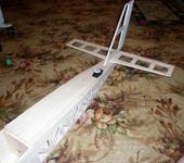 Хвостовое оперение клейте, Что касается машинки в хвосте не совсем ясно и оправдано, есть же достаточно места в Фюзеляже, на мой взгляд машинки снаружи размещают для того что бы в них попадала влага и отходы ДВС, поверьте моделисты прошлых поколений (которые ещё Сталина видели) так не делали, повторяю это мое мнение - оно может быть оспорено или неправильно, тут вопрос культуры строительства, ведь прежде всего мы хотим построить самолет а не мельницу. Запуск и обкатка выполняется на стенде вне модели, успеете её заделать маслом и отходами ДВС. Главное дело движется, я вот тоже сегодня только РВ вышкурил.