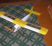 Почитал топик, интересно. Я такой же построил еще в прошлом году. Расчитывал под РИТМ-2.5 и аппаратуру Signal. Полетный вес получился 1250 грамм. Сделана из сосны, фанеры и пенопласта.