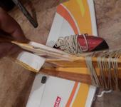 Скрещиваю в домашних условиях два кальмато 40 калибра, крыло от спорта, фуз от тренера. Чтобы крыло уместилось в ложемент пришлось подрезать заднюю кромку примерно на 6-8мм.