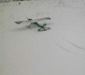Немного оживлю тему. Кальмато поставлен на лыжи и 4.01.2019 открыл новый сезон. После 40 минутного пребывания на улице при -4, АСП-шка завелся с 7-го рывка от руки. Триммировать самолет после установки лыж практически не пришлось(один щелчок триммером РВ вниз). Отлетал в свое удовольствие. Жаль видео нет, поскольку в городе, где я сейчас живу, коллег по хобби та и не нашел, а тащить с собой супругу по колено в снегу совесть не позволила. По иному до места полетов не добраться. Фото с телефона, в снегопад. Поразило то, что ушатанный АСП, без подкала, ровно тарахтел на холостых до момента посадки.
