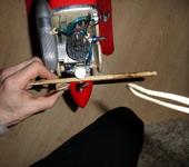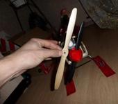 Когда деревянный винт сделал, он с запасом был и по длине и по ширине, что-то около 12 и лопасть шире того, что на фото в полтора раза. Когда газу дал на нём, самолёт аж туда сюда наклоняться на шасси начал от инерции и тяга была хорошая (не замерил только). Но оборотов двиг полных не развивал, тяжко ему было, решил не издеваться уменьшил и диаметр и лопасти…А так, вид грозный был, жаль не сфотал.