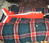 Теперь это чудо выглядит так. Флаппероны, никакого флаттера, управляемость супер!, перевернутый полет, висение, ну про бочки и петли я молчу! (кстати, расходы на максимуме, экспонента 40%), сухая полетная масса - 2600 гр. Правильной центровки добился за счет смещения батареи под бак и сместил машинку руля направления! (это к тому что я машинку руля высоты перенес на хвост)