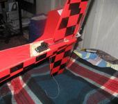 Теперь это чудо выглядит так. Флаппероны, никакого флаттера, управляемость супер!, перевернутый полет, висение, ну про бочки и петли я молчу! (кстати, расходы на максимуме, экспонента 40%), сухая полетная масса - 2600 гр. Правильной центровки добился за счет смещения батареи под бак и сместил машинку руля направления! (это к тому что я машинку руля высоты перенес на хвост)