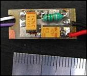1-й банки (1.2) на входе это явно маловато.Может конечно и прокатить, если поставить мощный дроссель (1А), но у меня такого не было, и измерителя индуктивности тоже нету, чтобы намотать. Ток я поставил где-то до 0.5-0.75 А. Но с одной банкой при подаче нагрузки был большой провал по выходу, причём нагрузка не превышала 0.5 А в пике. Итого поставил 2 банки.