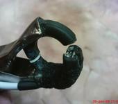 Датчик к ферриту и половинки кольца приклеил к крокодилу супер-клеем «Контакт-Гель», к датчику припаял провода и заизолировал термоусадкой, затем примотал нитками к половинке кольца.