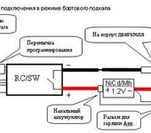 Для питания свечи накаливания используется отдельный аккумулятор на 1.2V. Момент включения накала программируется при помощи перемычки, и может быть настроен на любое удобное значение. Если позволяют возможности передатчика, то лучше устройство подключить в отдельный канал и сделать микширование с каналом газа.