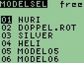Информация о слотах состоит из 3 колонок, первая отображает номер слота, вторая название модели и последняя количество байт занимаемое моделью в памяти. Выбор одного из 16 слотов памяти осуществляется перемещением курсора вниз или вверх. Выбор может быть осуществлен циклически, то есть от слота номер 1 нажатием кнопки ВВЕРХ можно переместиться на слот номер 16 и наоборот. Текущий выбранный слот отмечается миганием номера слота. Выбор слота для редактирования осуществляется нажатием кнопки ВПРАВО. Если вы хотите скопировать или переместить любой из слотов, то нажмите кнопку МЕНЮ коротко, при этом название модели начнет мигать. Если вы нажмете кнопку МЕНЮ повторно в этом положении, то выбранная модель будет сдублирована в следующий свободный слот памяти. Если из данного положения вы нажмете кнопку ВНИЗ или ВВЕРХ, то вы переместите выбранный слот на одну позицию в соответственном направлении.