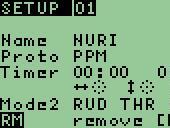 В поле ‘Proto’ вы можете выбрать один из нескольких протоколов передатчика. В нормальном случае вы выбираете PPM.
