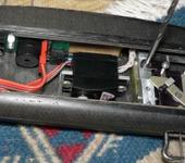 через размыкающий микрик (размыкающая кнопка). Это если нужно выключать двигатель через 7 секунд, а если управлять принудительным спуском, то можно не спеша подключить батарею и запустить модель.