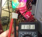 Вот фото до включения и после включения спустя 1 минуту, видно напряжени упало всего-лишь на 0,01 Вольт. В отличии от компа после установки на который, видеокарты GeForce GTS 450 напряжение упало меньше 12 Вольт а при установке тока заряда ай макса больше 1.5 А выдавал некорректное напряжение т.к напр падало менее 10 Вольт замерял вольтметром, со старой карточкой норма все было, блок питания на компе 400Ватт.
