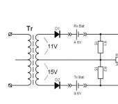 Поясняю. 15 вольт - это измереное вольтметром? В данном случае он покажет пиковое значение. Поскольку на обмотке после диода нет конденсатора имеем одиночные полупериоды. Это снижает постоянную составлюящую тока ровно вдвое. Далее. Последовательное включение аккумулятора передатчика приводит к тому, что ток через диод течет с малым углом отсечки полупериода - градусов этак 70 - 80. Получающаяся картина тока через диод - срезанные верхушки синуса с паузами между ними, гораздо большими, чем сами импульсы. Если разложить такой сигнал в ряд Фурье, то постоянная составляющая тока, а именно она и только она участвует в гальванических процессах зарядки аккумулятора, как раз и составит искомые 70 мА.