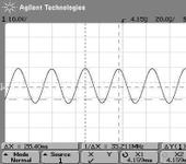 задающий генератор. Видно, что синусоида немного “кривая” При настройке необходимо добиться как можно более одинаковых горбов, пусть даже амплитуда будет не максимальна.