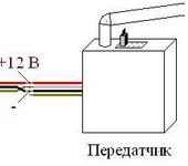 Из передатчика четыре провода: чёрный, белый, красный, жёлтый.