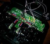 Сегодня почти полностю закончил передатчик - осталось придумать как аккуратно прикрутить в нутри корпуса разьемы для установки иодемчика и как и какую антенну вывести наружу. Для отладки написал программу на PC которая эмулировала поведение борта и индицировала командв с передатчика. Связь черех второй модем который был подключен к R232 компъютора. Код вычислителя отлаживаю через JTAG. Времени ушло с вчерашнего утра - в основном на мезанические работы с корпусом передатчика
