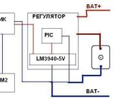 Регулятор спаян на макетной плате. Питание приёмника берется с LM2940 , машинки запитываются через приёмник. Схемку переделал.