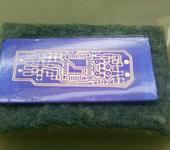 … А вот чего забыл отписать - то, что после проявки надобно ополоснуть плату водичкой и желательно бросить в кювету с подкисленной водой (хоть уксусом…). В кислой среде быстрее останавливается процессы, начатые в щелочной среде проявки; фоторезист упрочняется; на ощупь можно почувствовать уменьшение его “склизкости”-“сопливости”.