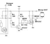 Вчера получил неожиданный эффект от замены в схеме регулятора резистора R2 510 Ом, стоящего между коллектором Т1 и питанием, на резистор 4,3кОм. Мотор стал плавно пускаться от любой батареи. Единственная шероховатость, которая осталась - это небольшой скачок оборотов при прохождении определённого положения стика газа. Вначале мотор плавно стартует и набирает обороты, потом происходит небольшой скачок оборотов(как порожек перепрыгиваешь) и дальше опять плавный набор оборотов до максимума. Обратно то же самое в зеркальном отражении, только скачок почти незаметен из-за инерции ротора мотора.