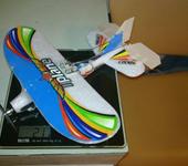 Сам планер весит 9гр, размах 26см, длинна 26см