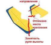 Самолет был починен, и в выходные на даче уже на 5 аккумуляторе (летали на поляне в лесу с приятелем уже в сумерках, поочередно меняя в руках пульт на бутылку пива) приятель опять приложил об дерево - киль окончательно отвалился и разбита морда. Теперь ждать неделю фюзеляж… 😦