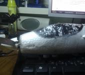 доделал и поставил удлиненный капот. думаю теперь нагрузка по меньше будет на отсек для апы, а то там и так тонкий пенопласт и у меня он от падений начал гнуться, приходится выравнивать путем опускания носа в кипяток (ток всю электронику убирать первоначально. в общем сейчас вот так: