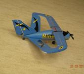 Ручная технология такова. Вырезаю крыло, обрабатываю очень мелкой наждачкой, кромки под профиль, близкий к Р 2. Потом разрезаю переднее крыло по центру и начинаю с помощью бытового фена гнуть. Сначала придаю V заднему крылу, потом делаю прогибы в месте соединения переднего и заднего крыла с таким расчётом, чтобы ближе к концам оба крыла имели отрицательную крутку(совсем чуть-чуть). После этого профиль делаю вогнутым. Можно и не выгибать-скорость будет больше. Навешиваю на фюзеляж на двусторонний скотч-легко сдёрнуть и повесить новое крыло.
