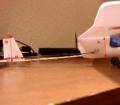 В общем, полетел он сегодня. Но есть в конструкции серьезный недочет, который можно побороть, только полностью переделав самолетик: бамбучина в роли хвостовой балки - отвратительное решение. Крутится, играет в полете и вообще…