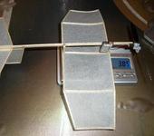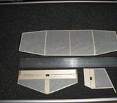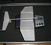 Пока получается очень даже хороший вес крыло 0.5 , киль с рулем 0.1 , стаб с рулем 0.4