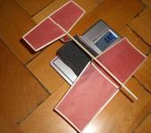 Согланен что ика лехче !! но был такой комплект ( не выкидывать же ) , насчет бамбуковых щважок , сегодня специально решил попробывать и понял что только бальса пока лучше по весу ( позже и карбонить буду ) для пробы была взята шпажка 3мм в диаметре , из нее сделал реечку 2мм х 0.6мм х 220мм так вот эта реечка весила 0.6 граммма (хватит ее на 3 нервюры ), а у меня пачка нервюр (8шт) весит 0.1 грамма . Ну смысол использовать бамбук ?? ну и что что бальса непрочная для веса в 4 грамма достаточно , и я неприследую идею сделать вечную модель .
