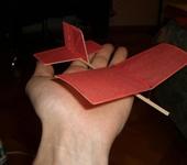 Вторая модель в стадии изготовления , Для нее истользовал бальсу и рисовою бумагу для обшивки (супер вещь) , По специальной приблуде собственного изготовления были нарезаны нервюры , собрана на стапеле рамка крыла , и встал вопрос как и каким клеем обтягивать супер бумагу . Долго думая решил попробывать концелярский клей карандаш ( затянул без проблем )