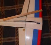 По поводу ремонта: поперек складки, вдоль фюзеляжа, с двух сторон приклеить уголек 1мм длинной 10-15 см, а чтобы не болталось крыло сделать из того-же уголька подкосы от фюза примерно до середины крыла.