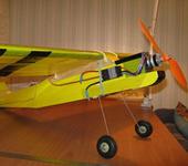 Успешно облетал модель, запускал с колес и с рук. Модель весьма крепкая. Резинки на шасси хорошо амортизируют при посадке, на крыле - оберегают крыло от повреждения, при ударах оно просто сместится. Аккумуляторная ниша закрывается линейкой, с боков остаются щели для охлаждения. С задней стороны линейка вставляется под крепеж шасси, с передней - прикручивается шурупом. Сначала думал делать подкосы на крыло, но крыло и без них крепится прочно. Модель перенесла несколько крашей, поломал пару винтов. Оказалась очень удачная нижняя “губа” под мотором, хорошо защищает двигатель от ударов о землю.