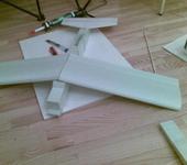 Склеил консоли крыла. В консолях вырезал вертикальные пазы, вклеил линейку. Крыло сделал с небольшим V (1-2град). Склеил фюзеляж.